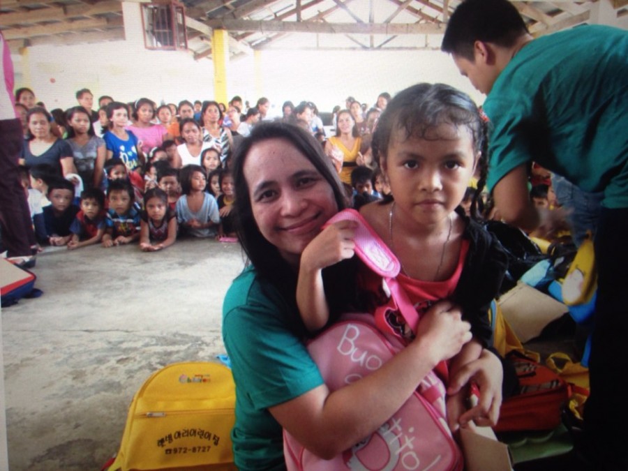 반친과 함께 3년 동안 필리핀에 가방보내기를 하고 있는 필리핀 이주민공동체 <사피나코> 회원들도 필리핀 바탕가스지역에 있는 초등학교 3곳을 찾아가 어린이들에게 책가방 2000여개를 나눠줬습니다.